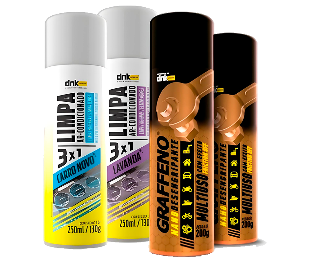 A Linha de Aerossóis DNK oferece soluções práticas e eficientes para limpeza, proteção e manutenção de veículos. Com tecnologia avançada, proporciona alto desempenho, rápida aplicação e durabilidade, cuidando de cada detalhe do seu automóvel.